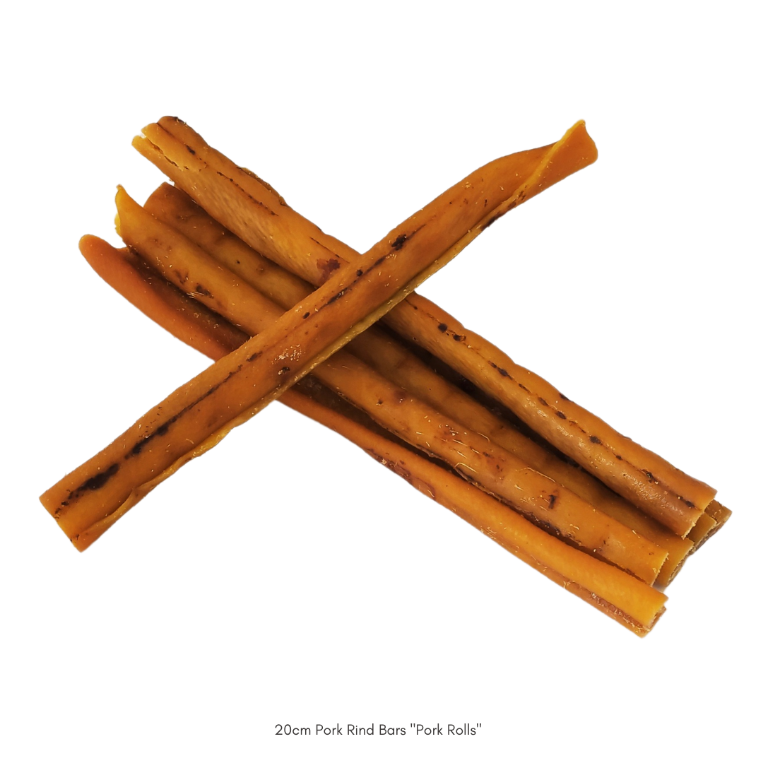 Pork Rind Bars are another of our 100% natural, single ingredient, long lasting chews. They are thinner than traditional beef rind bars, making them easier on your dogs teeth and stomach. Slow roasted in their own juices, they guarantee a mouth watering flavour in every bite!
